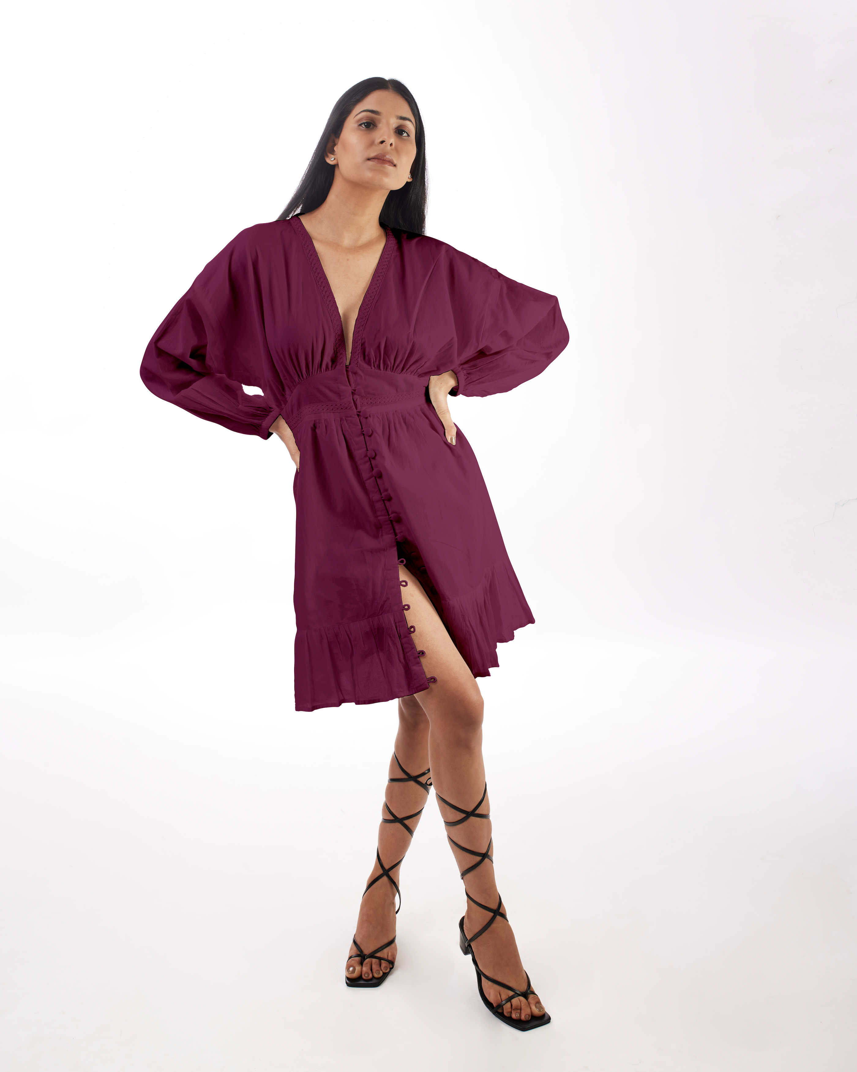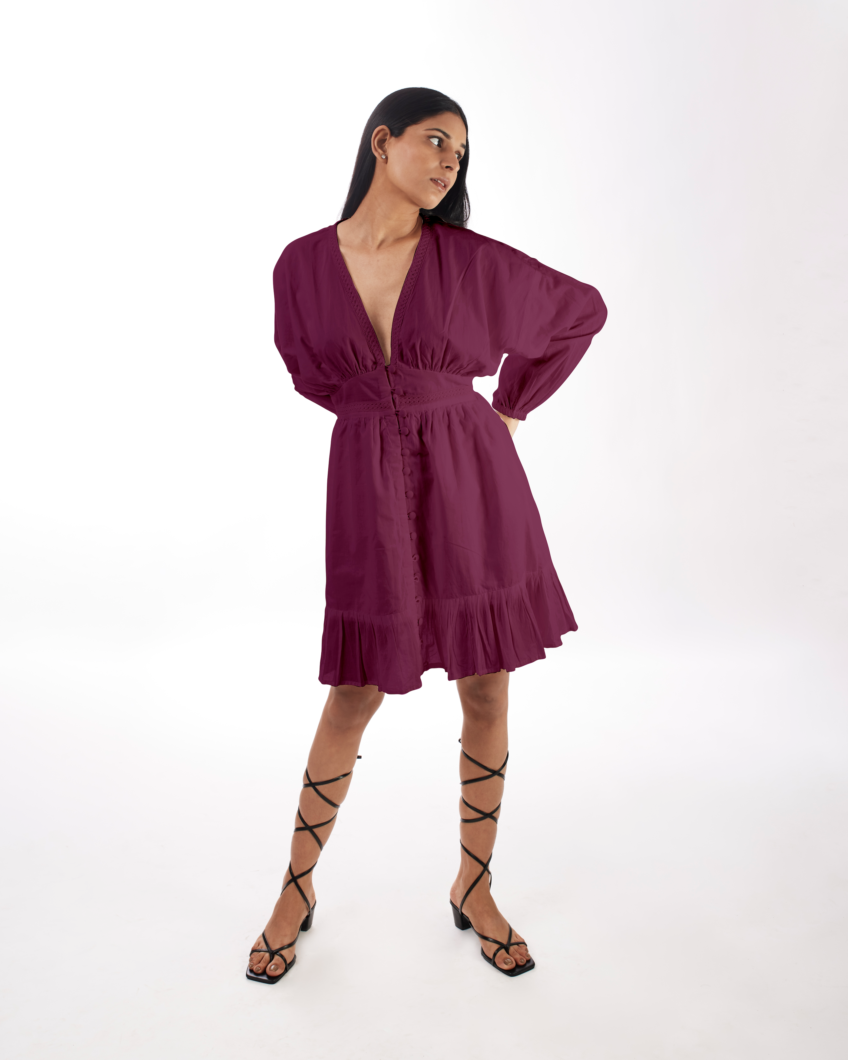 Plum Plunge Neck Dress -