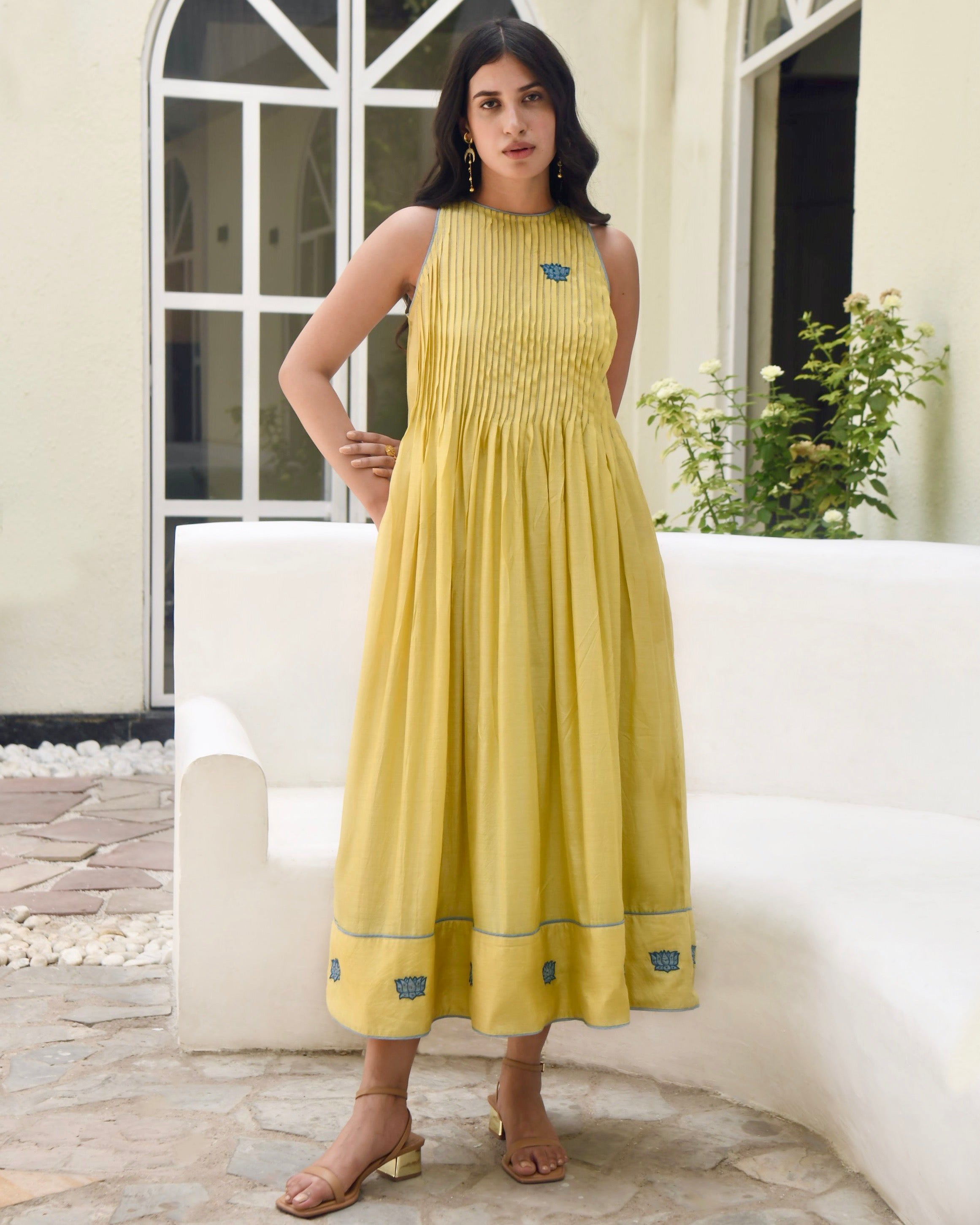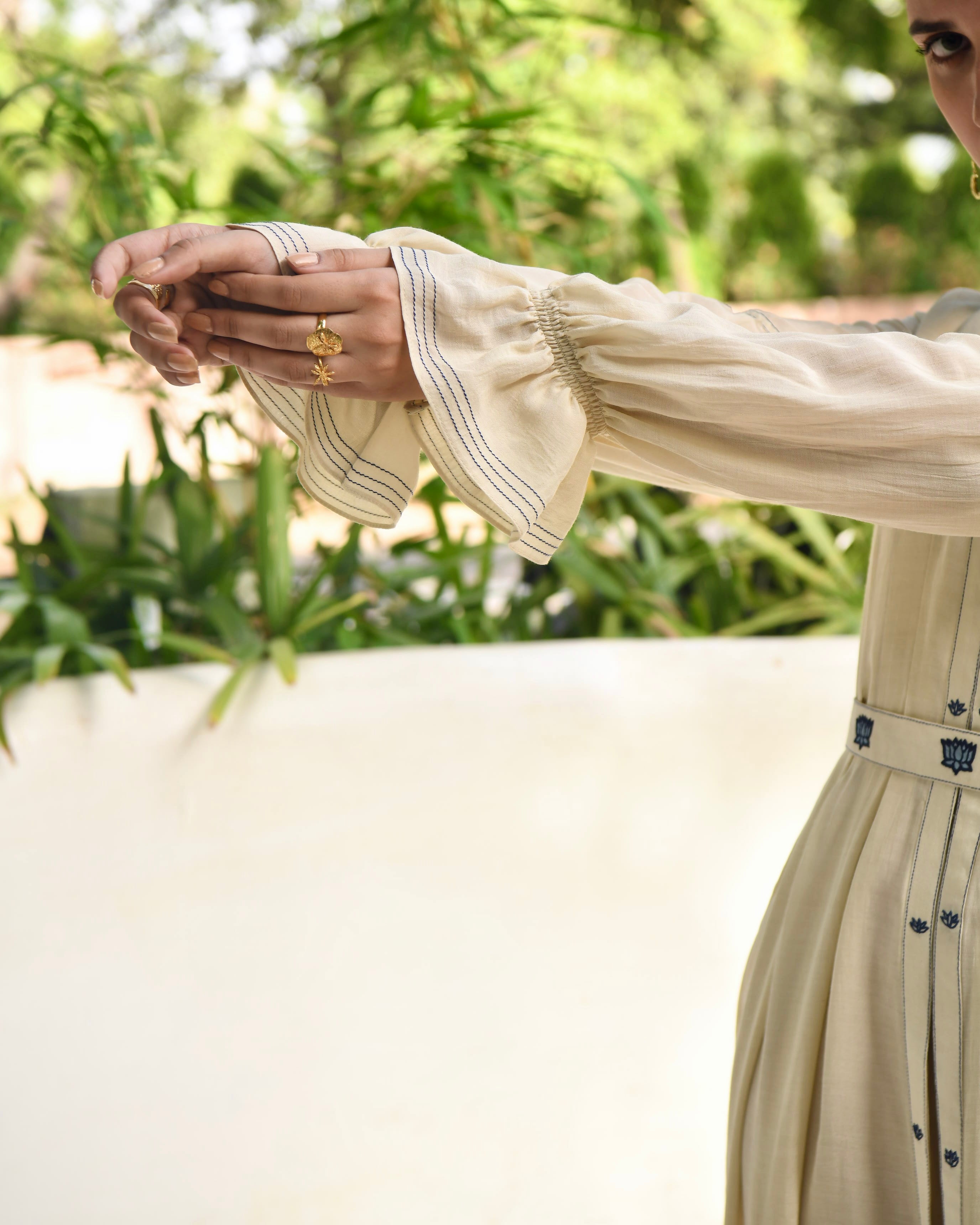 Blue Bangalore Silk Maxi Dress Embroidered -