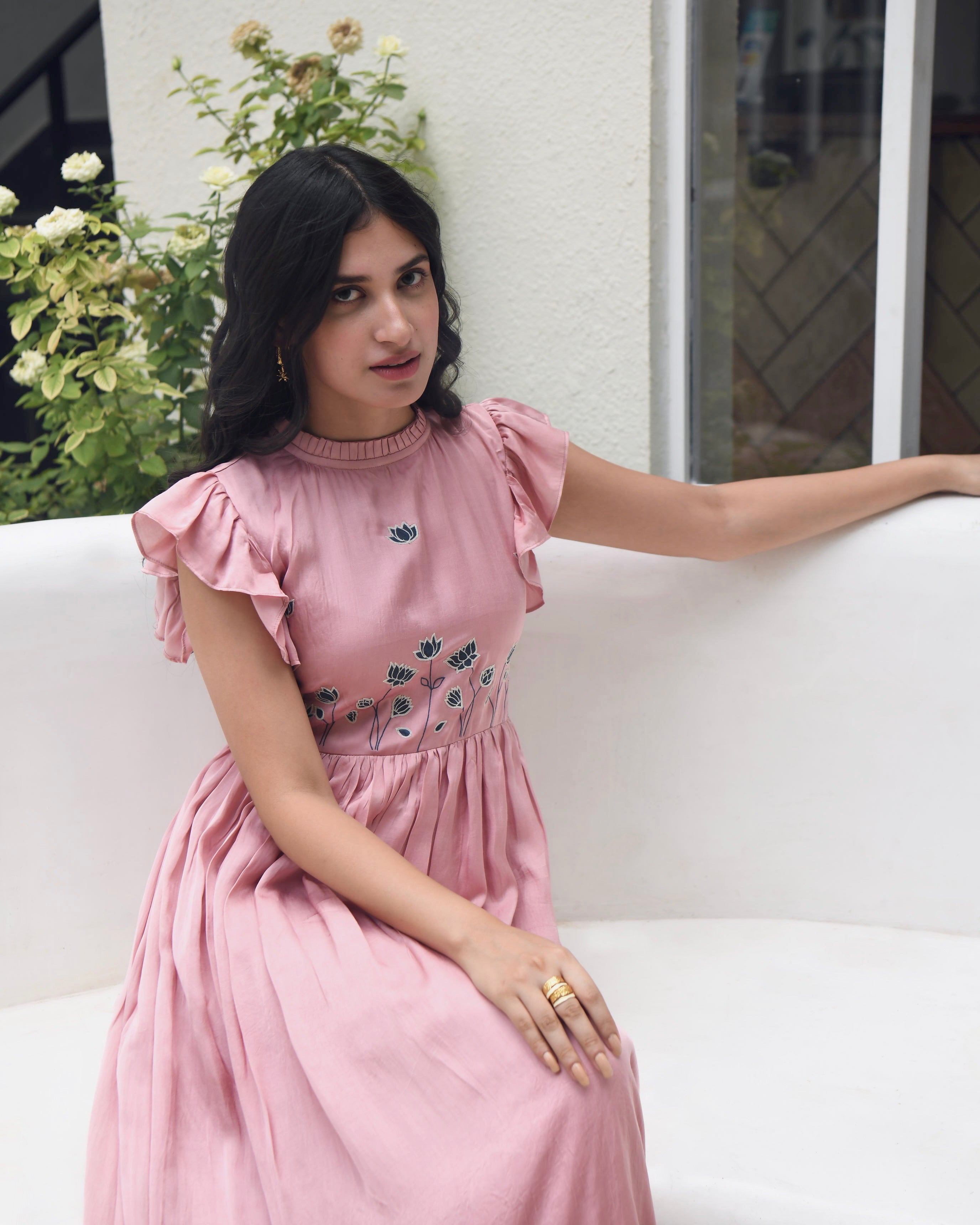 Blue Modal Silk Maxi Dress Hand Embroidered -