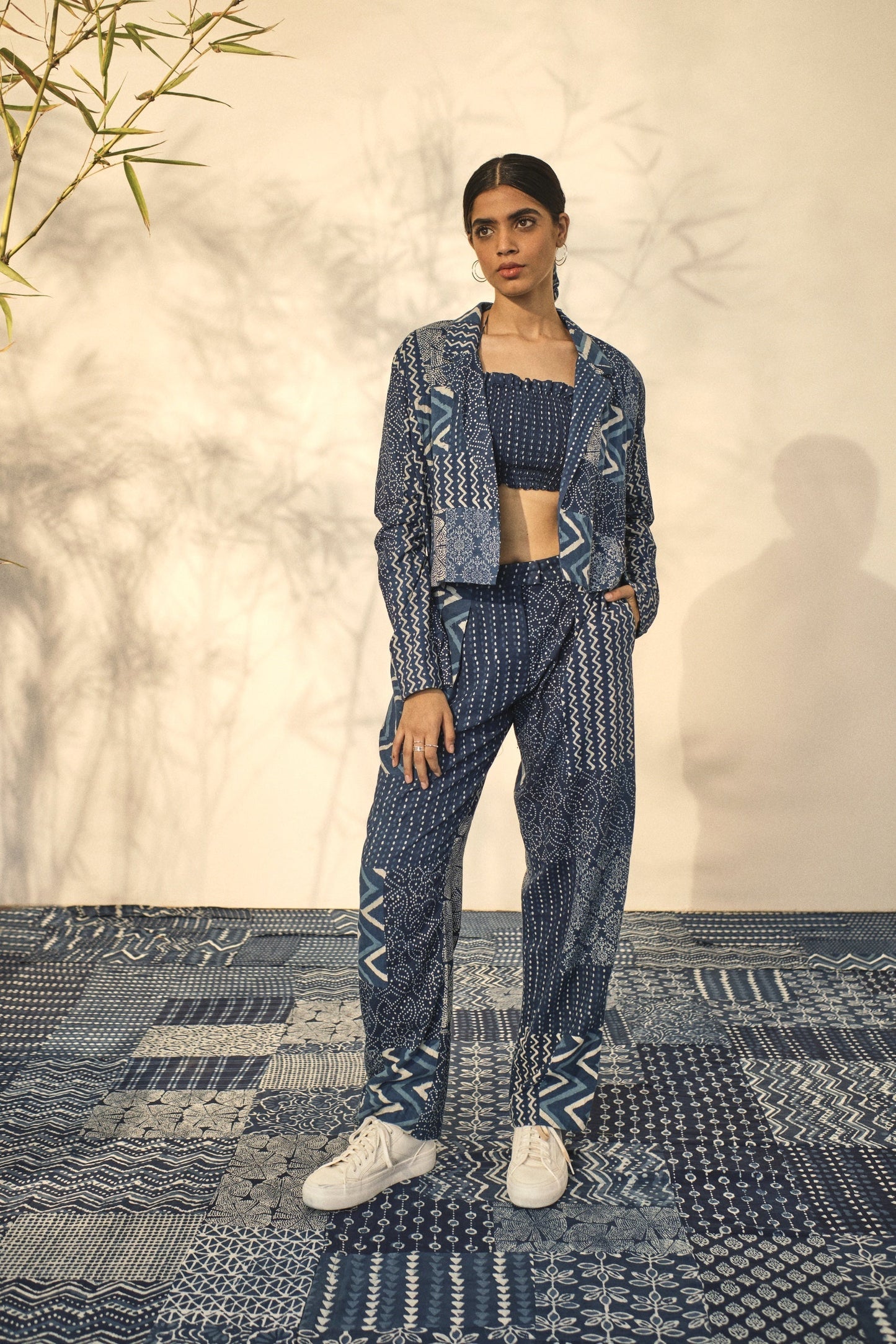 Casual Wear Pant at Kamakhyaa by Akashii Clothing. This item is 100% Blue Indigo Cotton, Bagru Prints, Blue, Casual Wear, handmade, Neeli by Akashi Clothing, Organic, Pants, Regular Fit