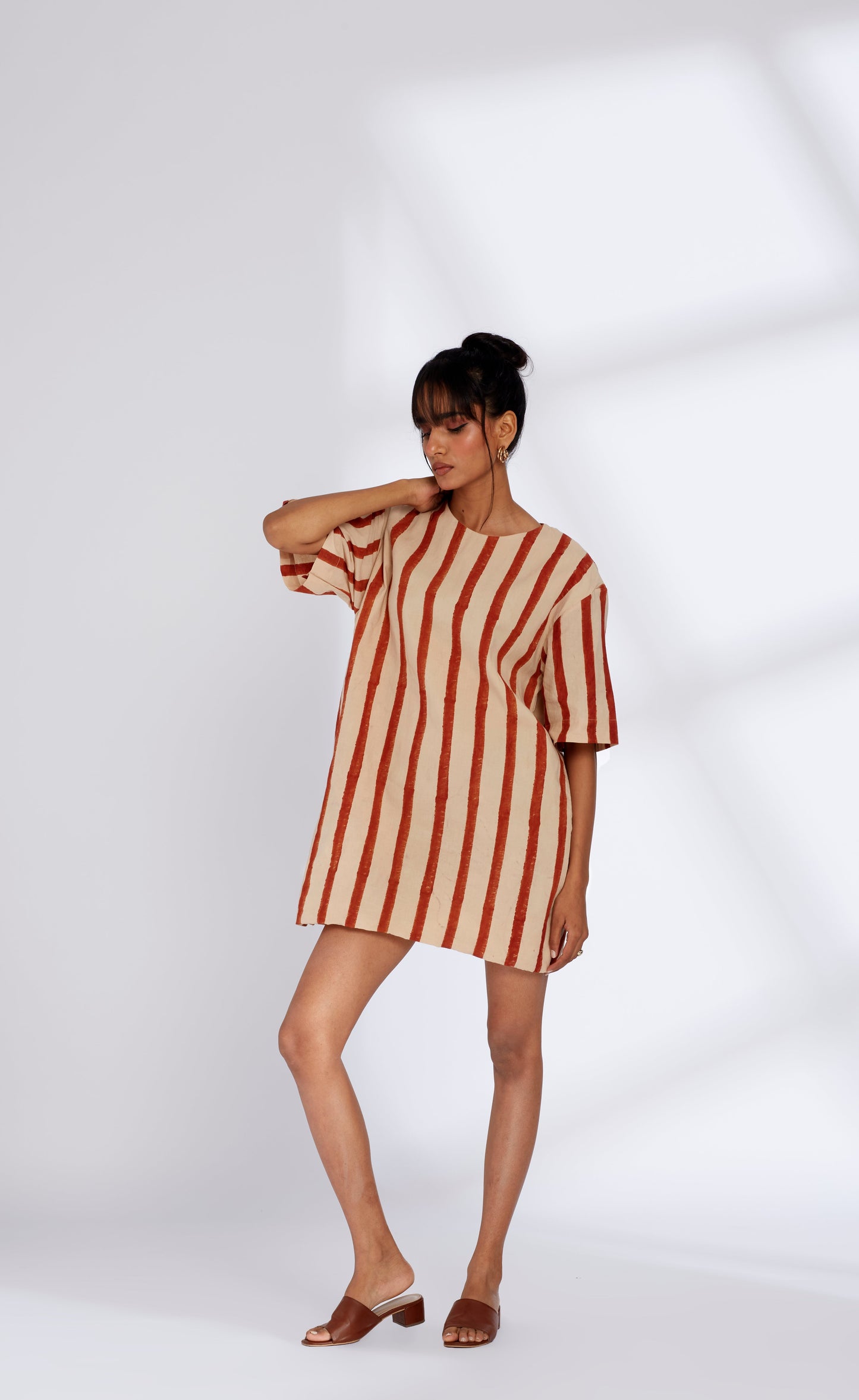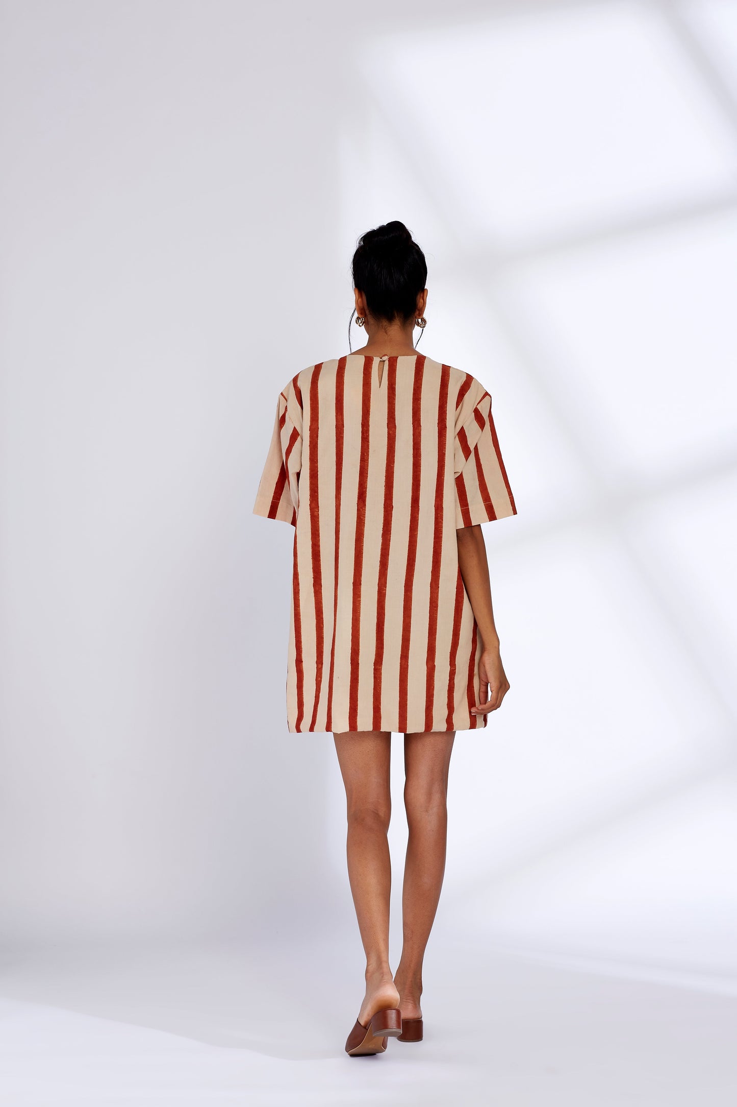 Red Striped Mini Dress at Kamakhyaa by Hasttvam. This item is Cotton, Fusion Wear, Natural dyes, Red, Relaxed Fit, Respondible production and Vegan, Stripes, White