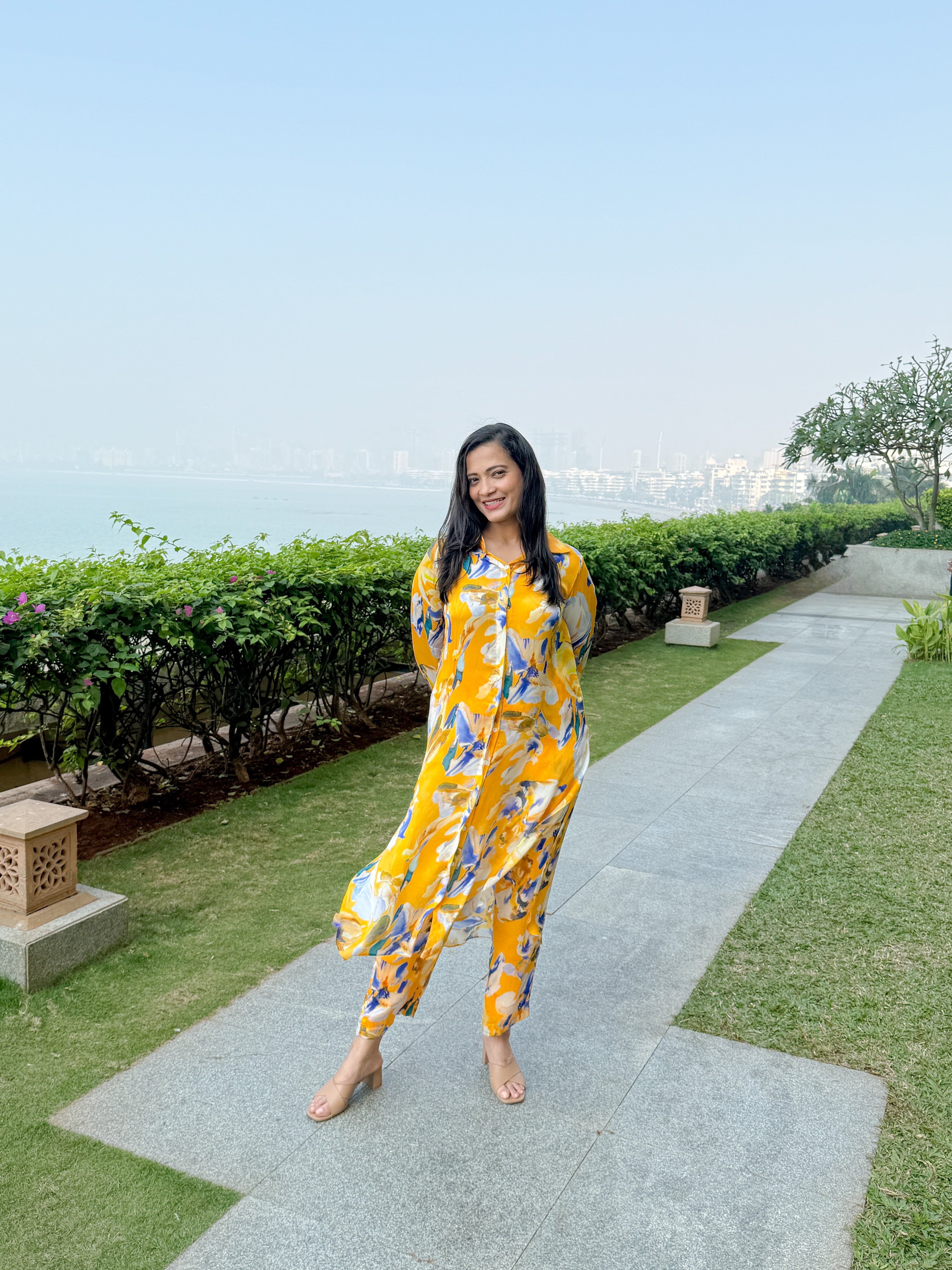 Bemberg Chiffon Yellow Embroidered Coord Set -