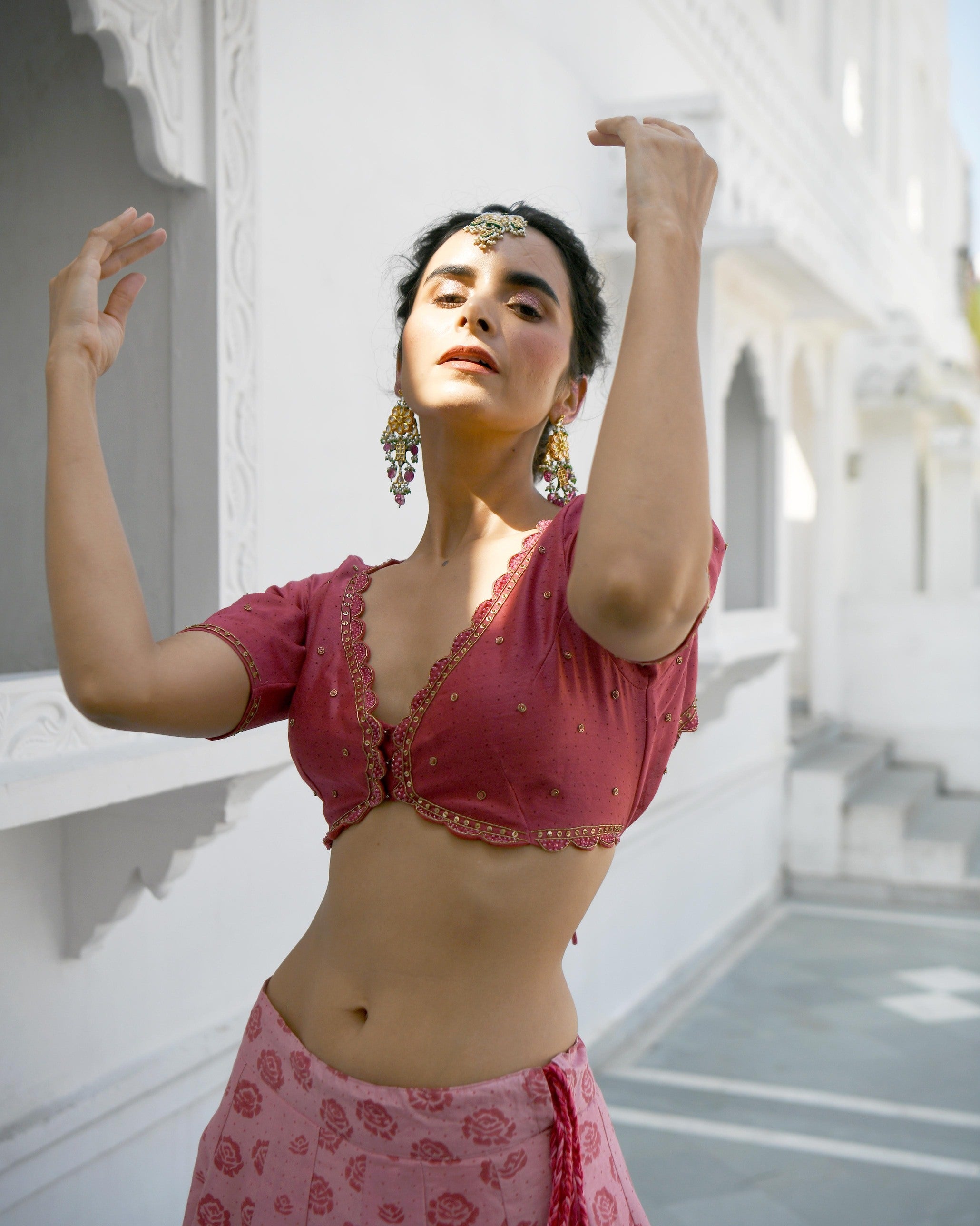 Pink Sleeveless Chanderi Silk Kurta Set With Dupatta -