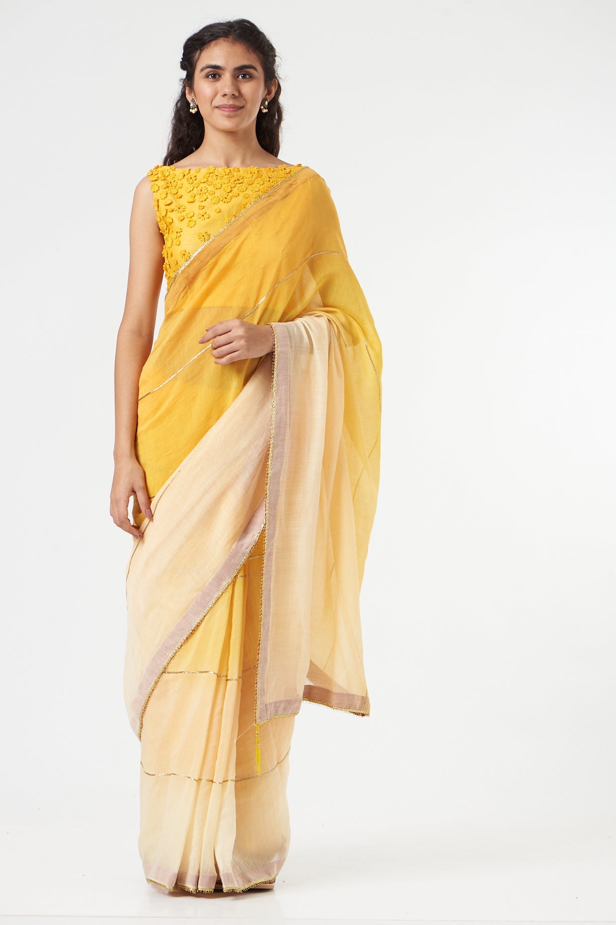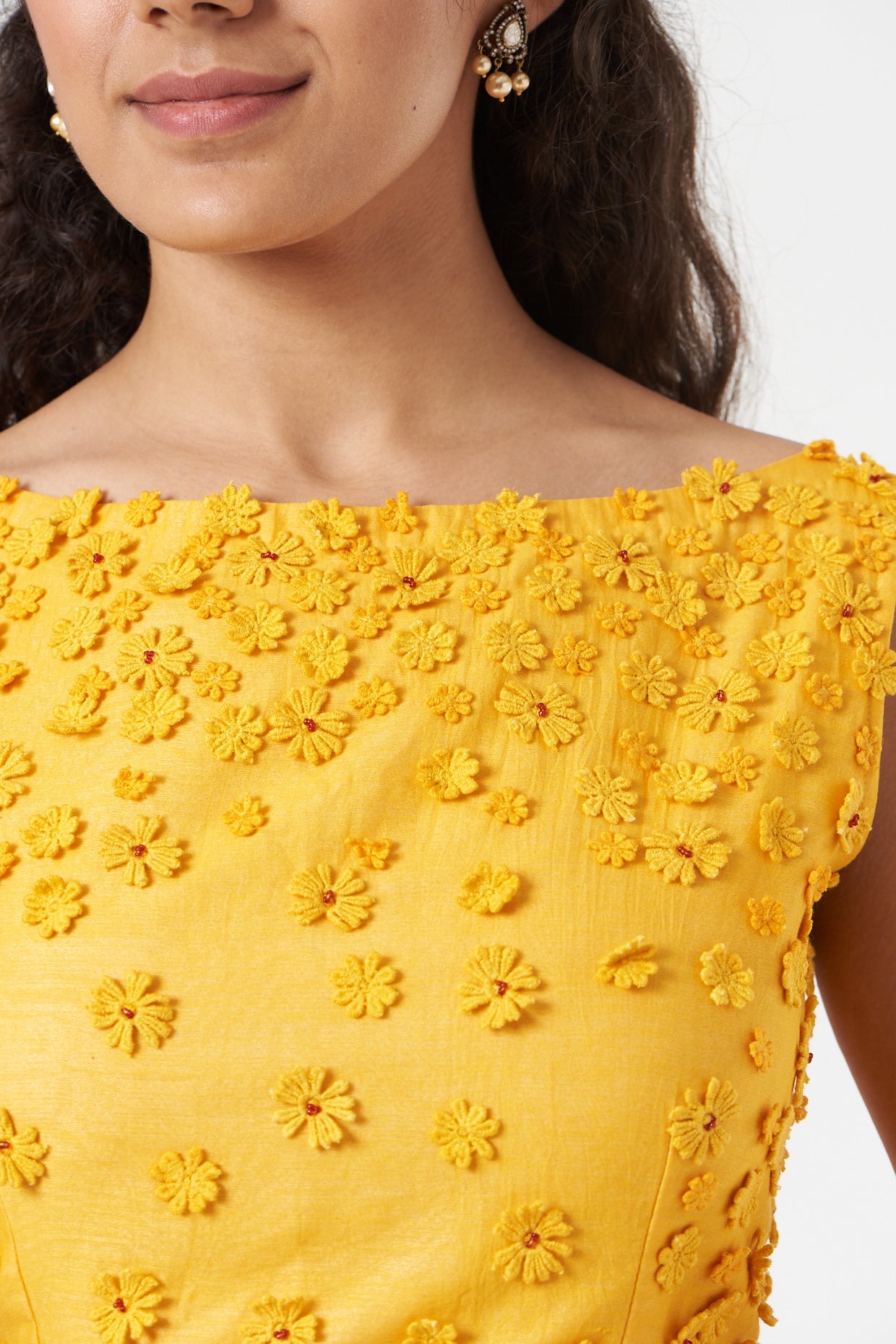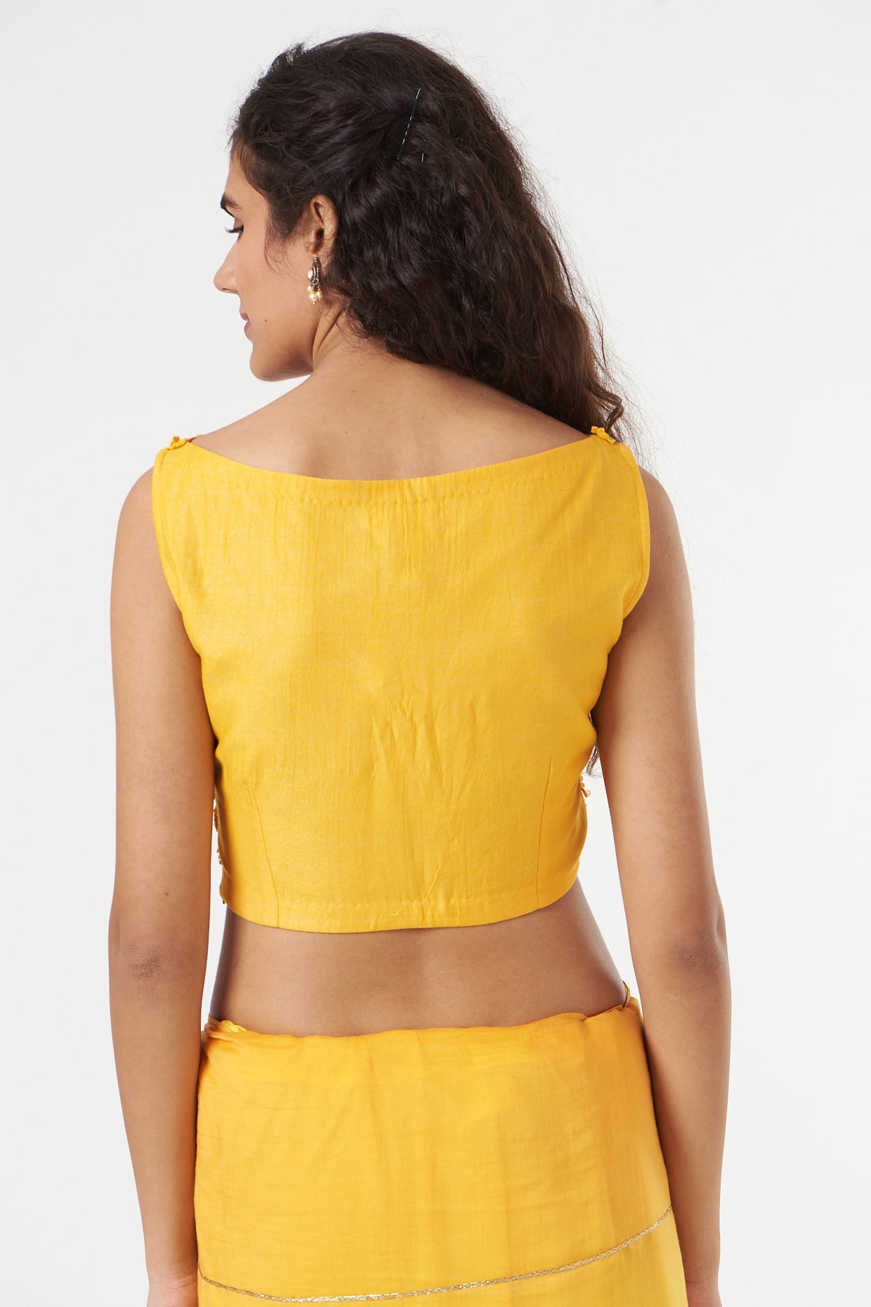 Yellow Silk Chanderi Embroidered Blouse at Kamakhyaa by Ahmev. This item is Casual Wear, Embroidered, Festive '22, July Sale, July Sale 2023, Natural, New, Regular Fit, Saree Blouses, Silk Chanderi, Tops, Womenswear, Yellow