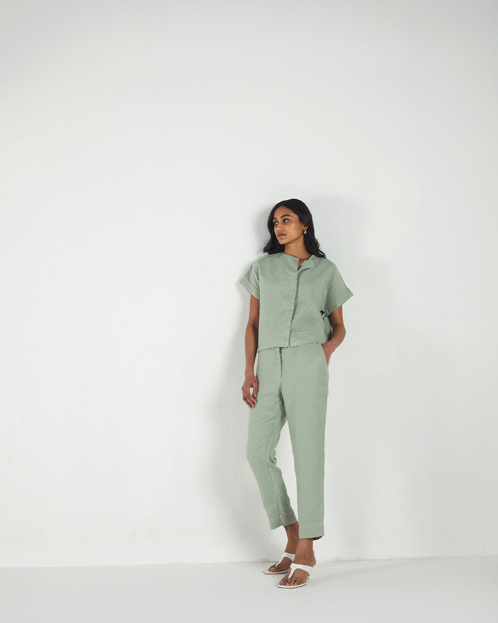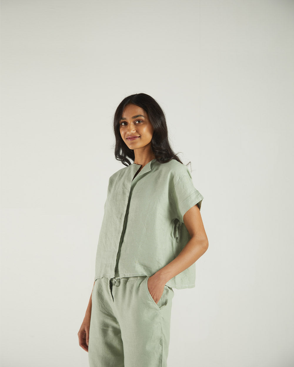 Olive Green Boxy Shirt at Kamakhyaa by Reistor. This item is Bemberg, Casual Wear, Green, Natural, Regular Fit, Shirts, Solids, Tops, Womenswear