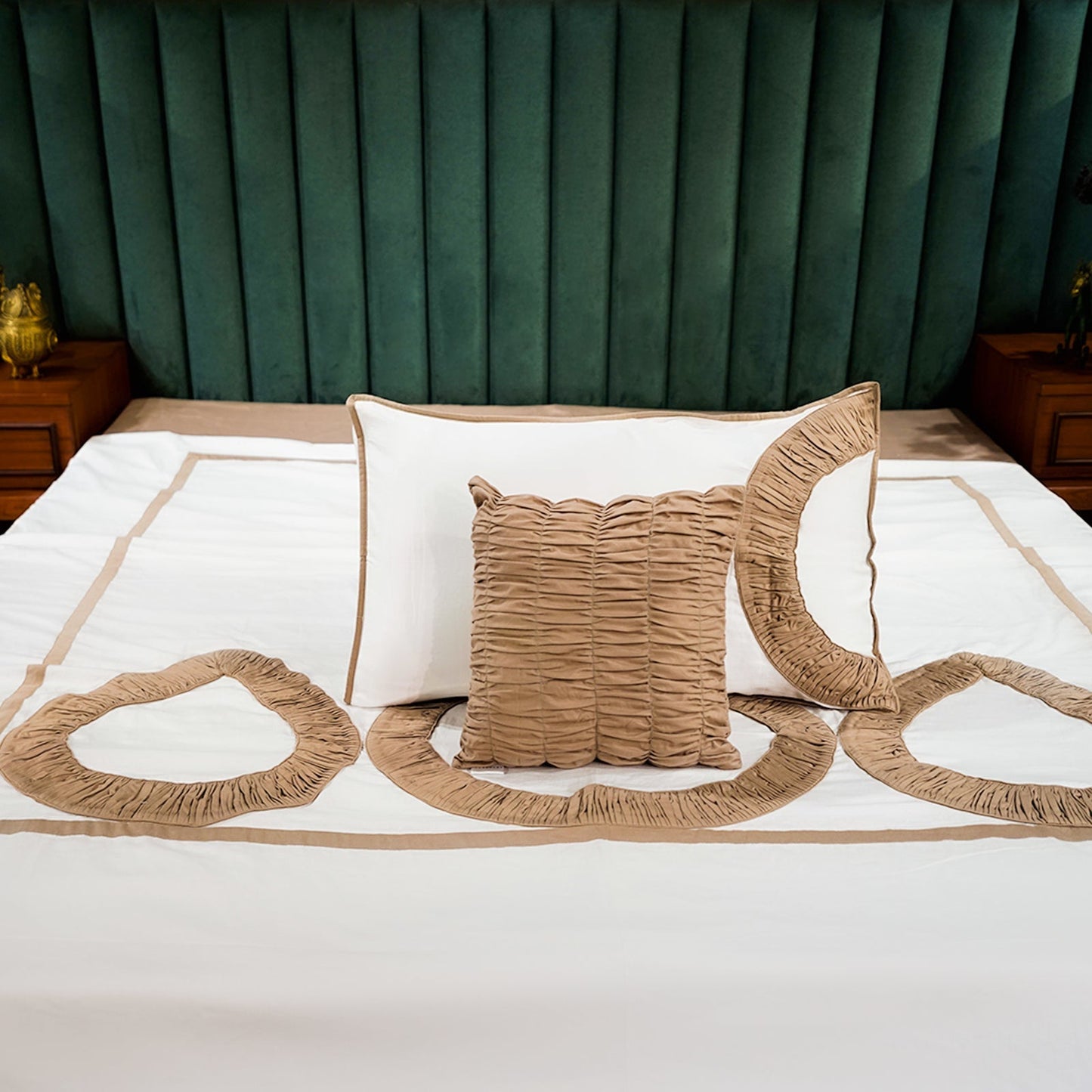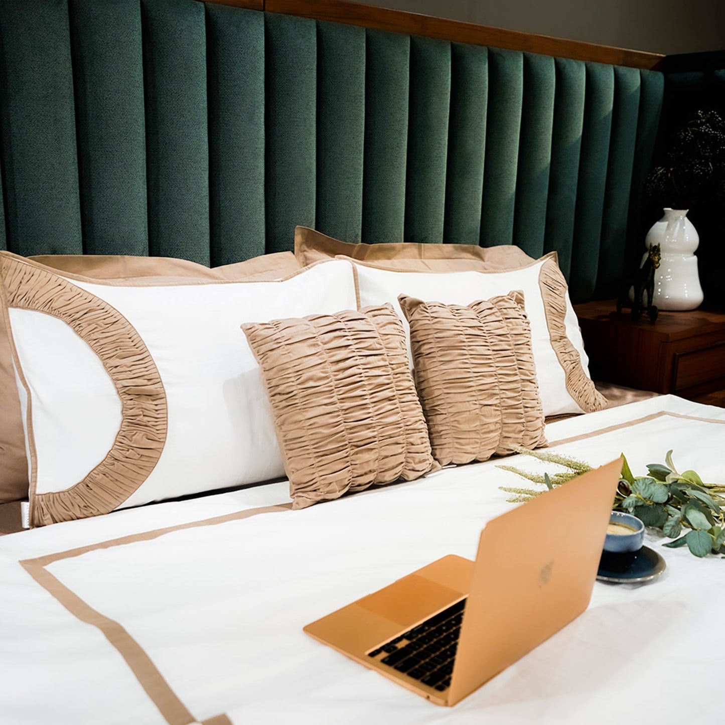 Crafting luxurious bed linens, our brand uses 100% premium cotton for sheets, ensuring exceptional comfort and durability. Additionally, our bed throws, cushions, and more are created from upcycled waste materials, promoting sustainability without compromising on quality or elegance.