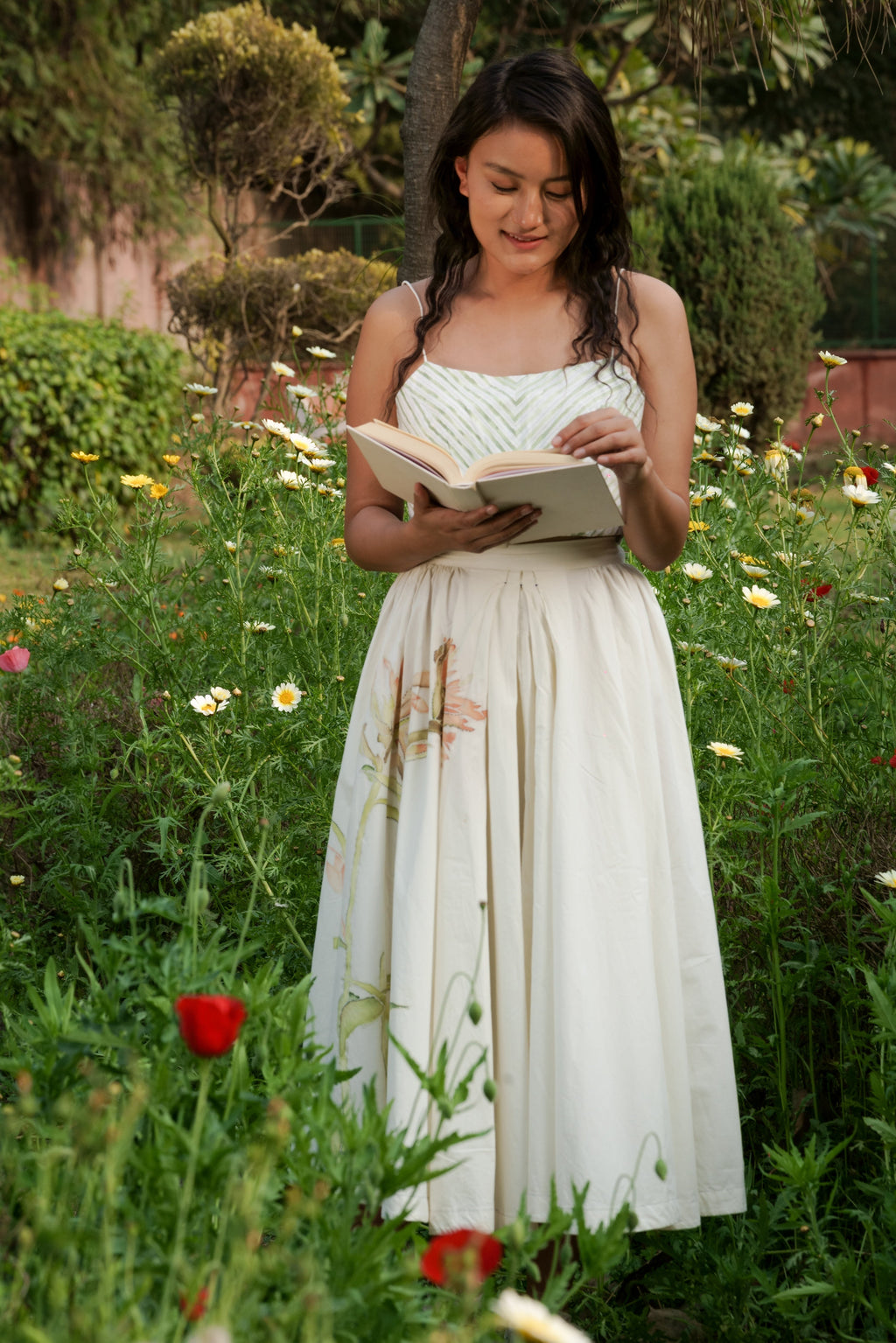 Noodle strap top crafted from 100% cotton and hand painting with resist batik is smolderingly feminine and flattering. The boudoir inspired silhouette is clean and minimal, making it a versatile piece to be paired with pants, skirts and, saree. -Top with noodle straps -Stripes made by resist batik with hand painting -Side zip opening with hooks.