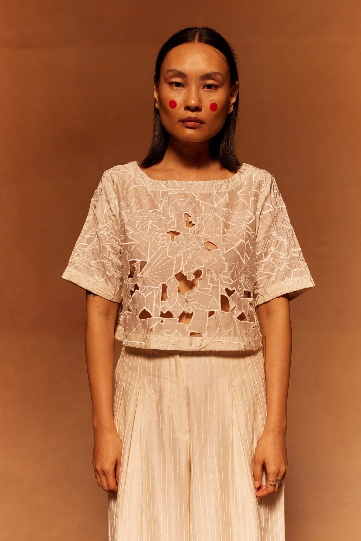 The Avame Cutwork Top is a beautifully crafted crop top that blends intricate cutwork and embroidery. This minimalist design is elevated with thoughtful detailing, making it a versatile piece that adds depth and dimension to your everyday wardrobe. Effortlessly elegant, it serves as a refined staple that complements a variety of looks.