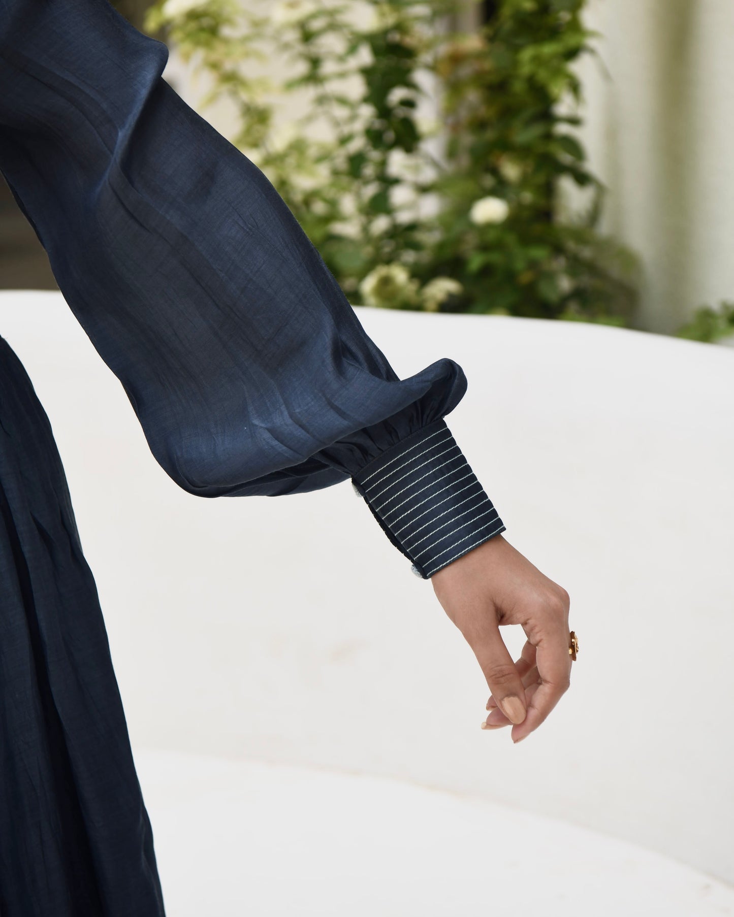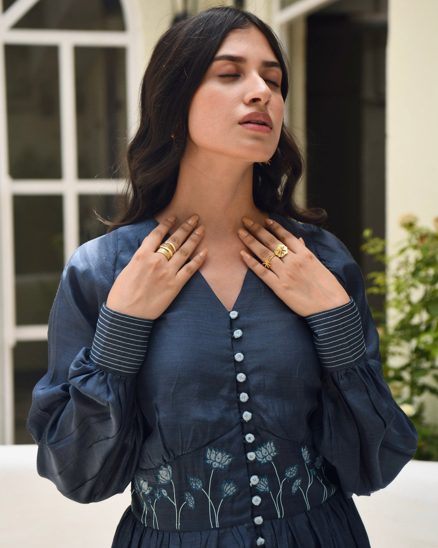 Blue Modal Silk Maxi Dress Hand Embroidered