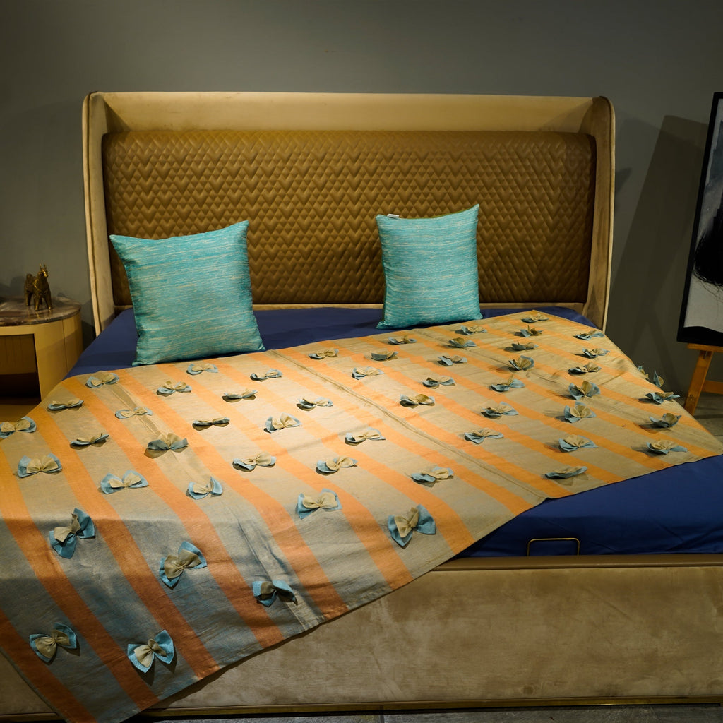 Introducing Ribbon Rhapsody Bed Throw a luxury addition to your bedroom ensemble . Adorned with delicately crafted Double bows, this exquisite throw effortlessly blends elegance and comfort. Immerse yourself in its soft, inviting embrace , and transform your resting space into a haven of timeless sophistication. Whether drape over your bed or gracefully adorning your favourite reading spot , the Ribbon Rhapsody is sure to elevate your home with its enchanting charm.