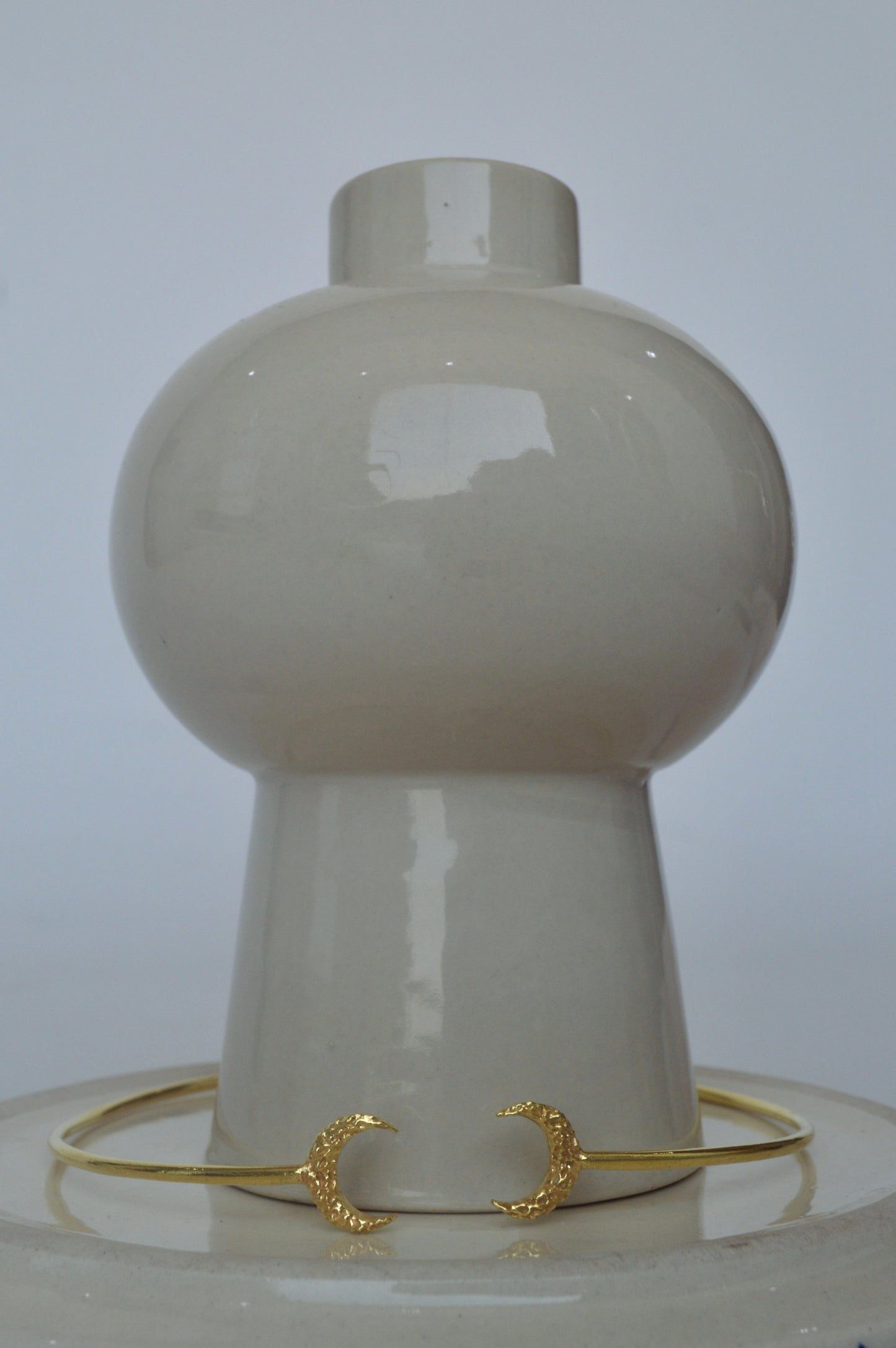 This statement moon open collar neckpiece is minimal and stylish. The simplicity of the piece makes it good summer accessory.