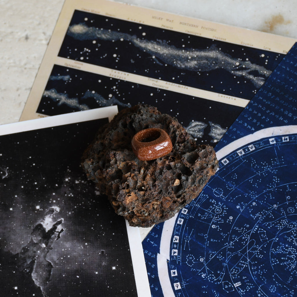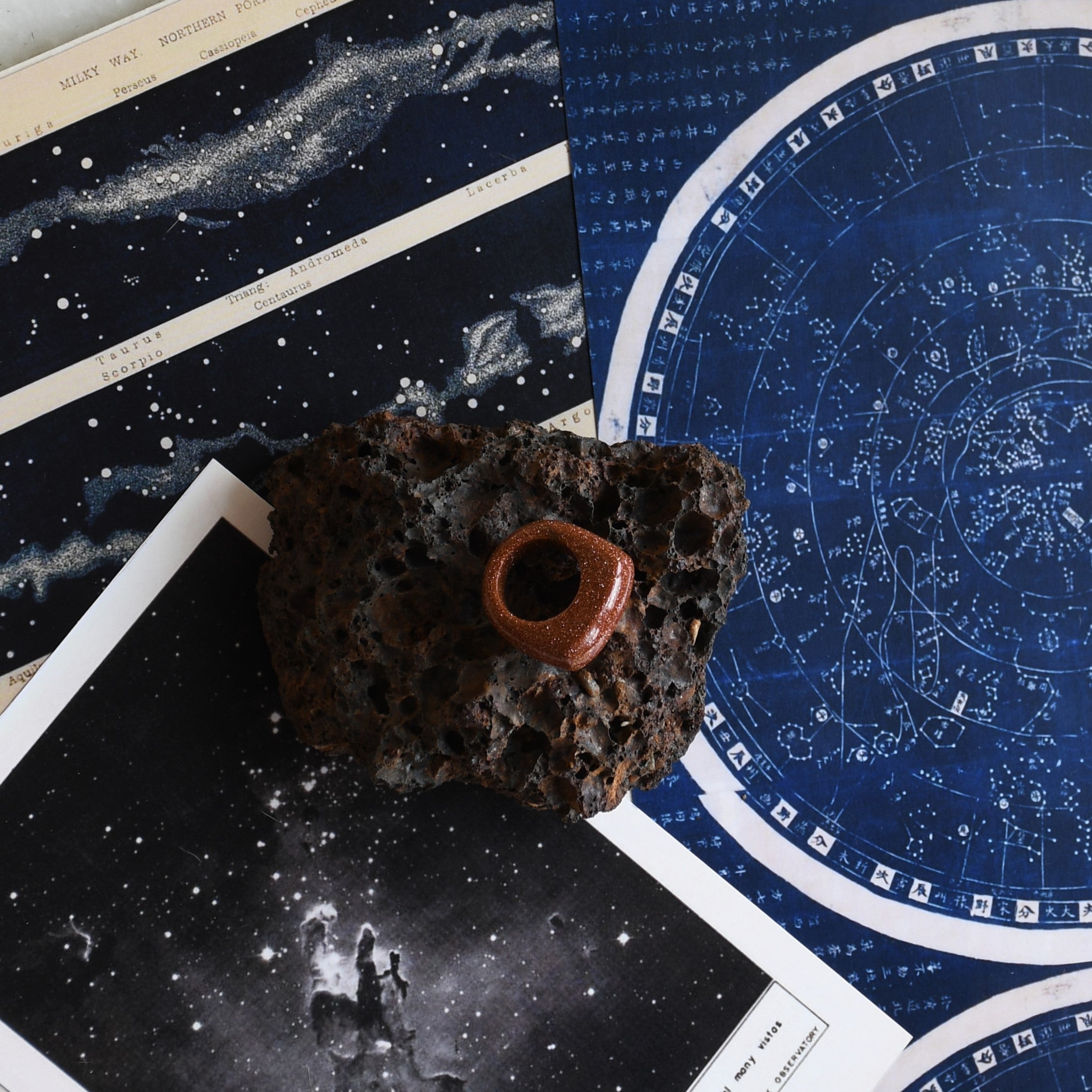 The Marici Ring embodies the light of the Buddhist Goddess and Boddhisattva, Marici. Handcarved Sunstone Ring.