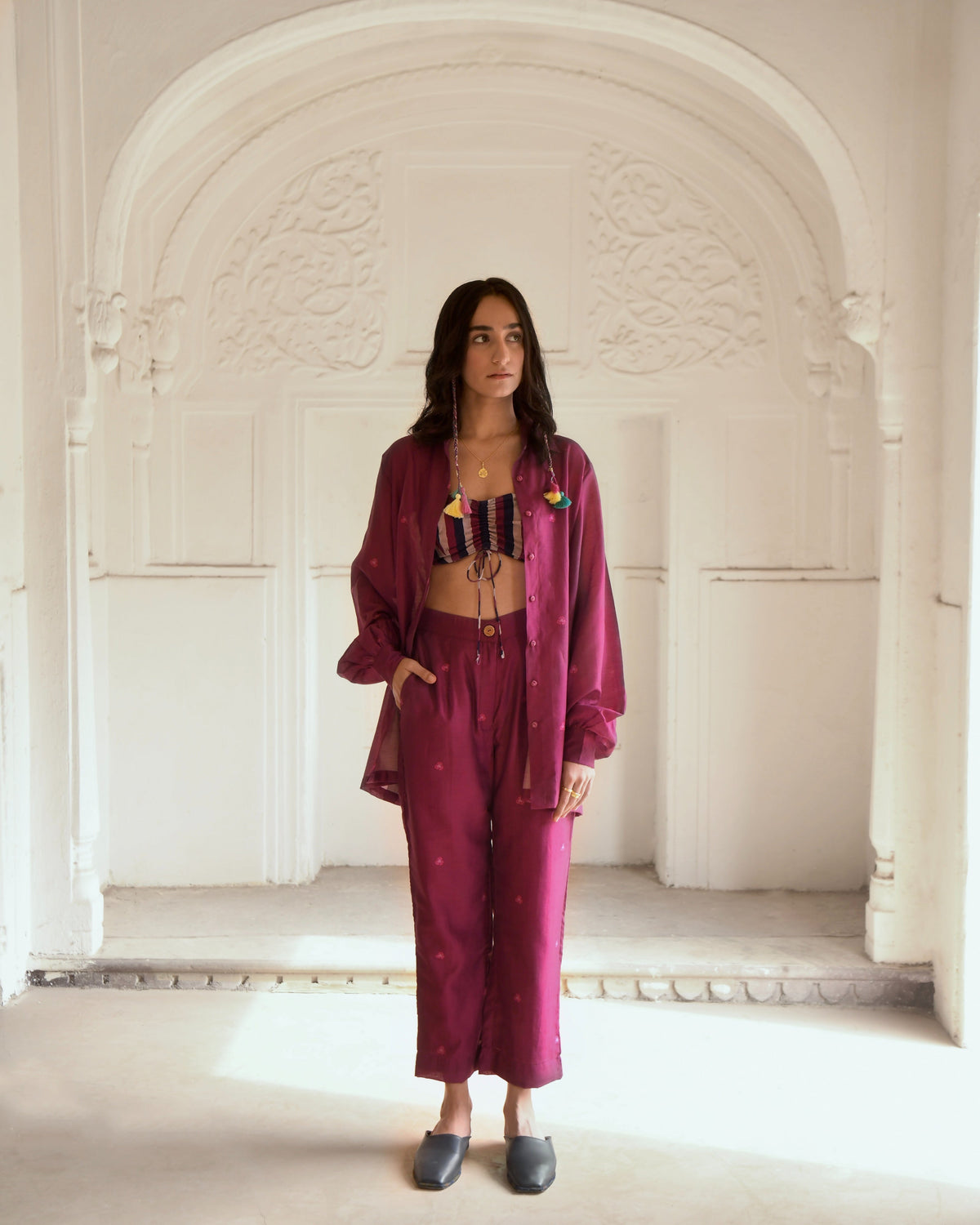 Red Embroidered Cotton Co-ord Set at Kamakhyaa by Keva. This item is 100% cotton, Fusion Wear, Indian Wear, Kurta Pant Sets, Natural, New, Ombre & Dyes, Red, Regular Fit, Saba, Womenswear