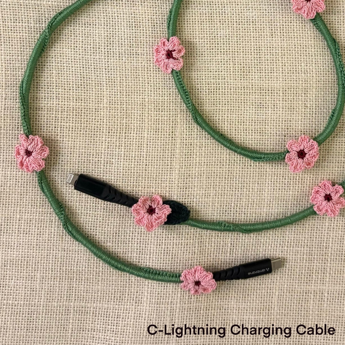 Pink Daisy Crochet Charging Cord C-Lightening Cable