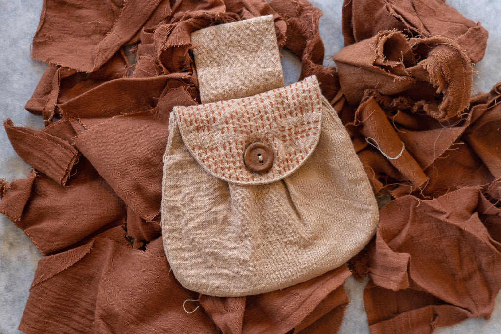 The brand sources the fabrics from a grassroot organization located in Bhopal, Madhya Pradesh working directly with artisan clusters based out of Madhya Pradesh, Gujarat and West Bengal: India. The Kala Cotton fabric is handspun and handwoven from Gujarat while all other fabrics for this collection are handwoven in Gwalior using Ambar Charkha spun yarn. The fabrics are then naturally dyed in their facility at Bhopal in an entirely handcrafted process. The fabrics reach our workshop based out of Delhi where all other operations such as pattern-making, stitching, hand-embroidery and hand-finishing take place. It is here that our vision comes to life and is translated in the very design of the garments. The leftover fabric scraps that are collected during the production process and then repurposed into accessories to ensure optimal use of resources. We are proud to have Upcycling as one of the core design practices at the brand.