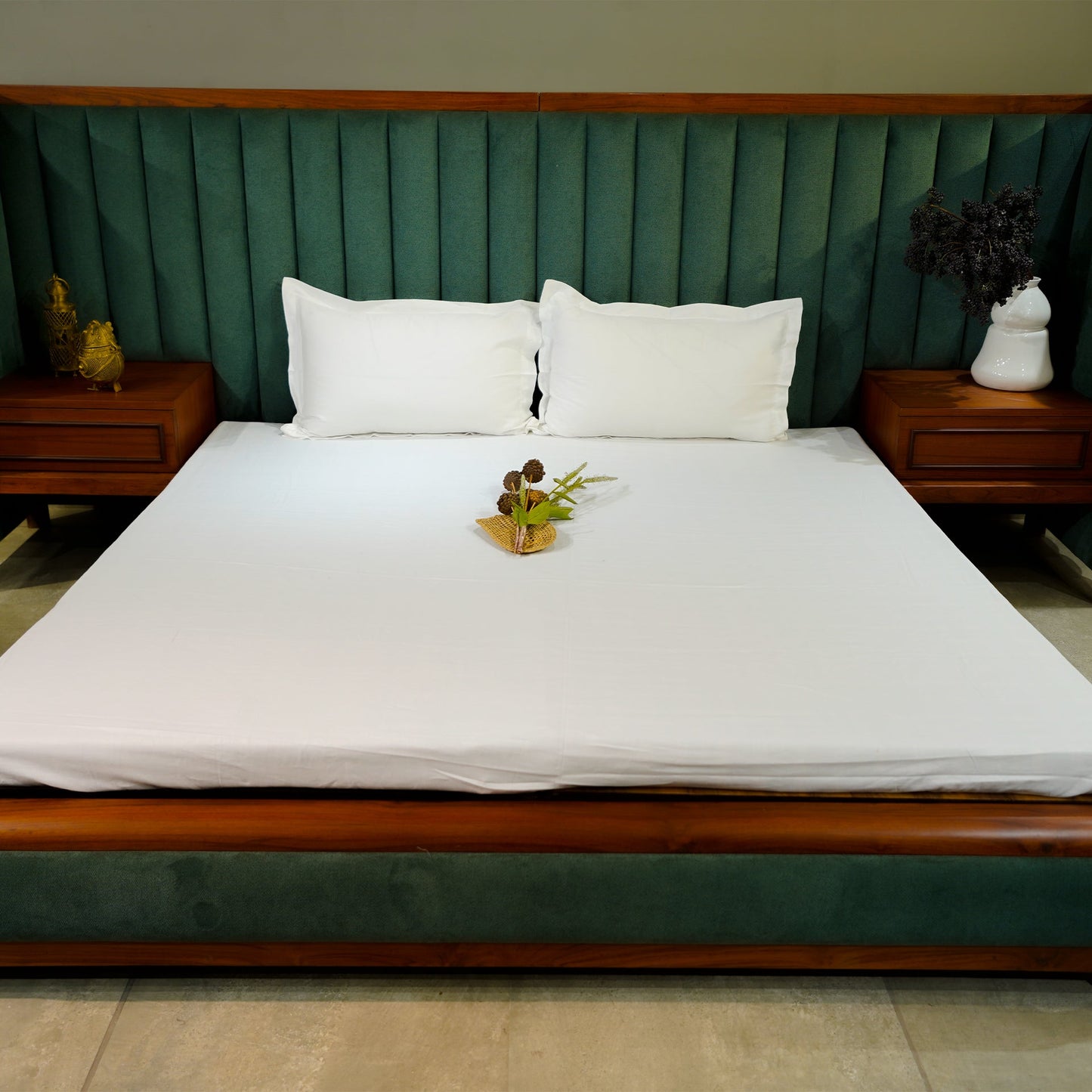 Crafting luxurious bed linens, our brand uses 100% premium cotton for sheets, ensuring exceptional comfort and durability. Additionally, our bed throws, cushions, and more are created from upcycled waste materials, promoting sustainability without compromising on quality or elegance.