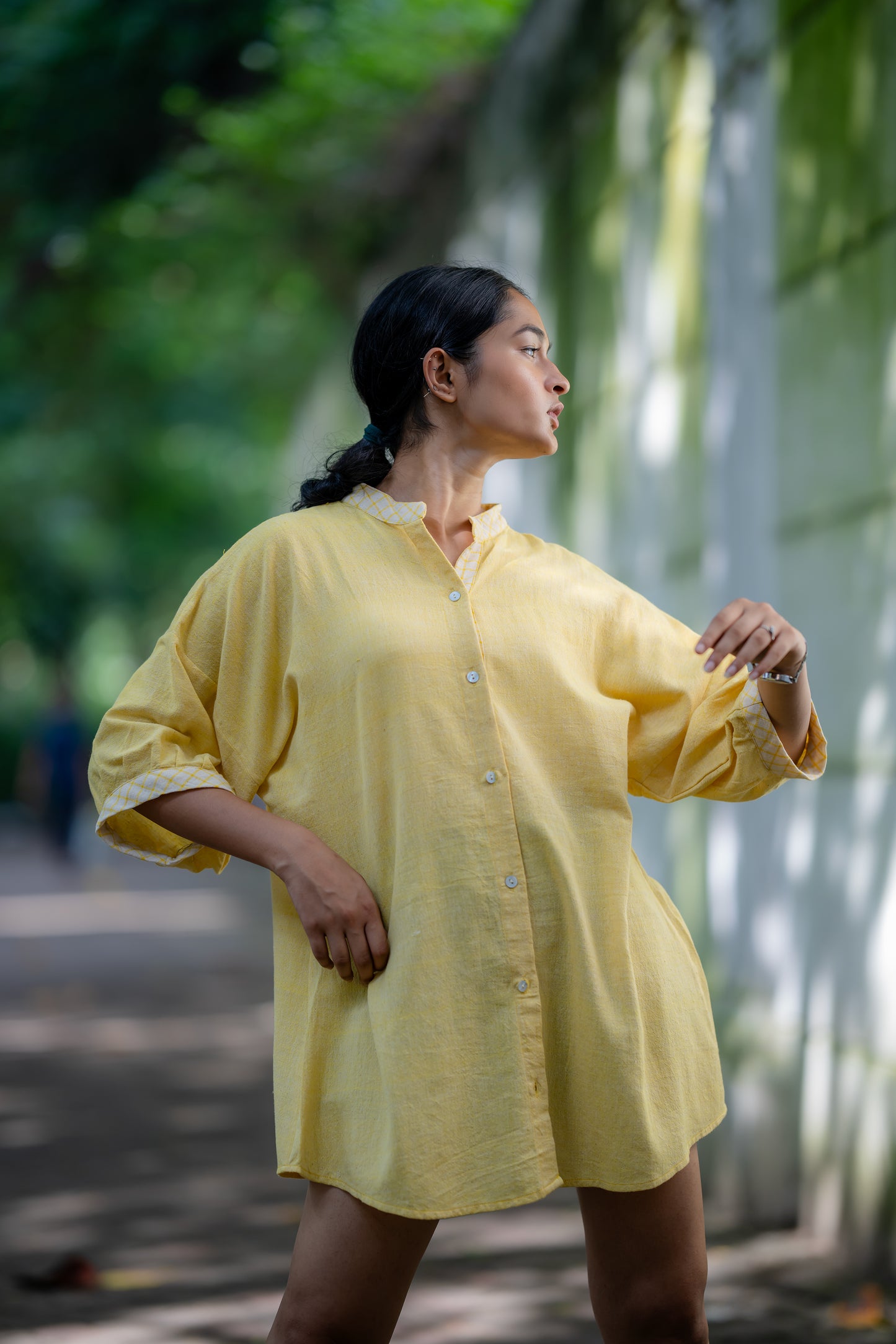 Yellow Mandarin Collar Handloom Cotton Shirt